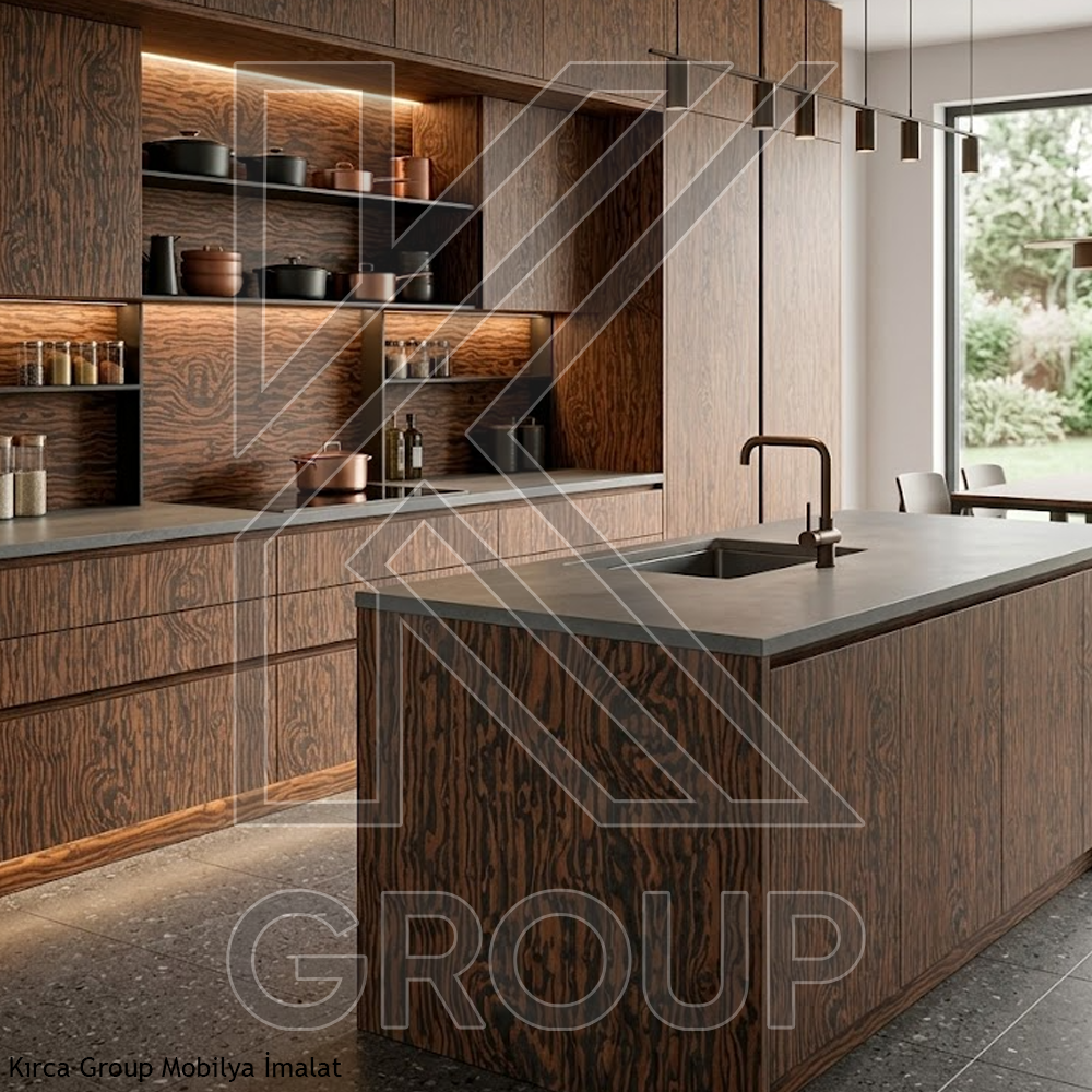 Mutfağınızda Egzotik Bir Dokunuş: Abanoz Kök Ahşap Kaplama Mutfak Dolapları